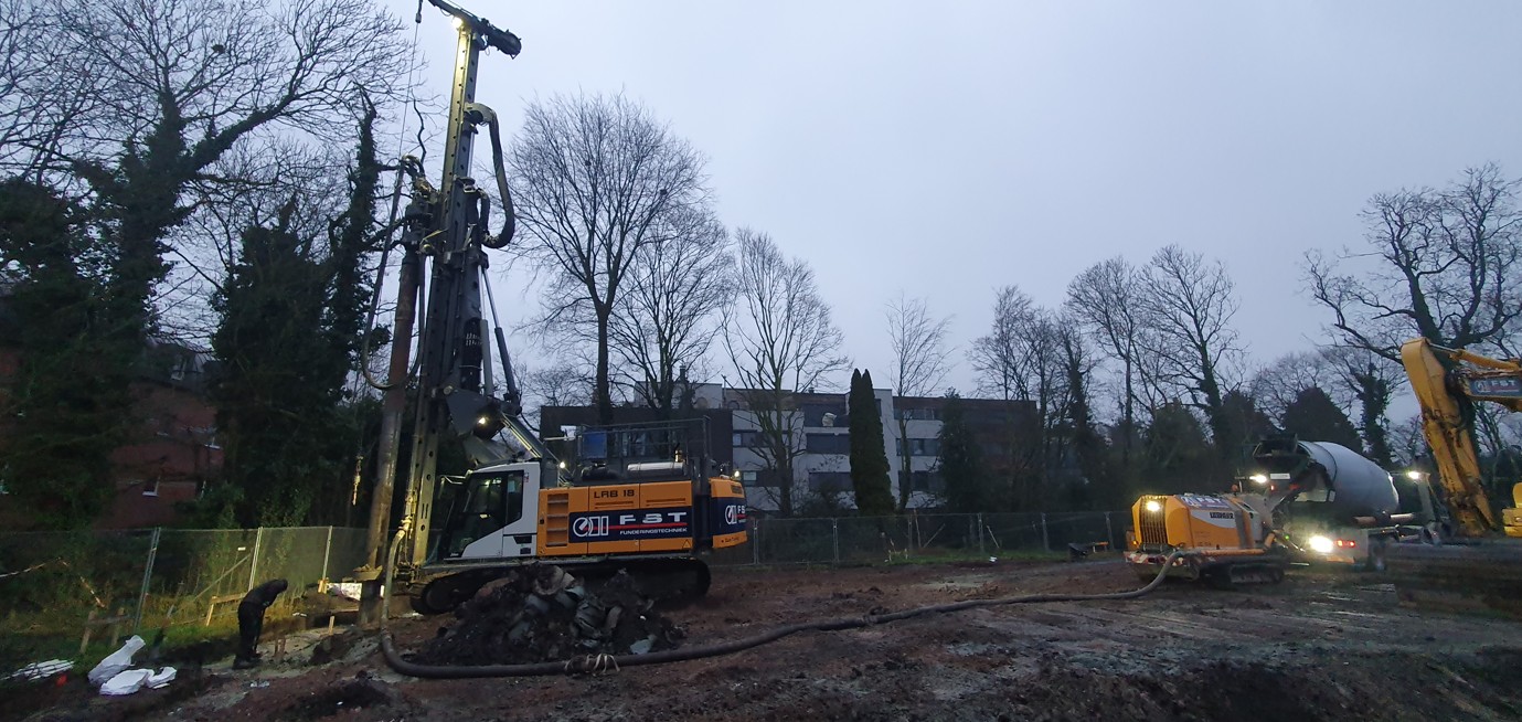 Van Wellen Group plaatst waterremmende wanden ter bescherming van de grote bestaande bomen rondom hun project De Brouwerij in Hoogstraten.